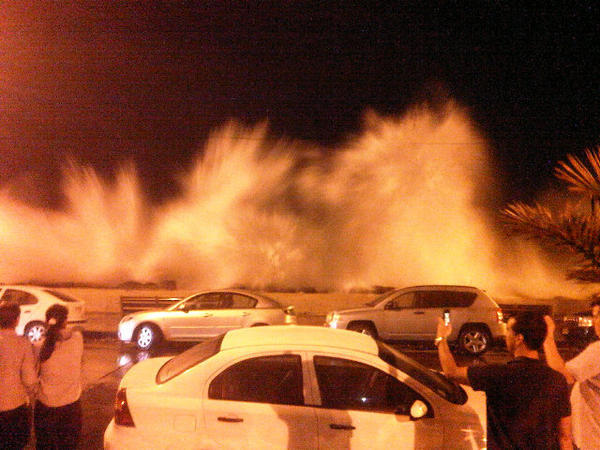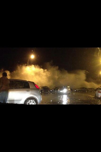 En este minuto Olas de cuatro metros en borde costero Viña del Mar alcanzando a algunos vehículos