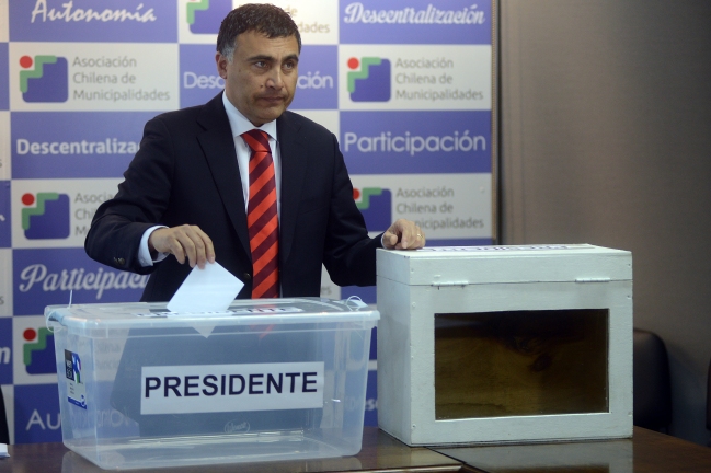 El vicepresidente de la Asociación Chilena de Municipalidades realizó una demostración comparativa con las dos urnas, la antigua y la nueva, explicando ventajas y problemas.