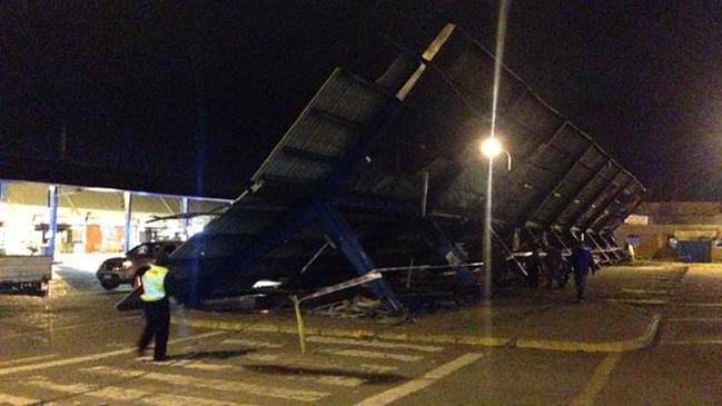 La caída de estructura del Terminal de Buses de Talca producto del viento en la zona: