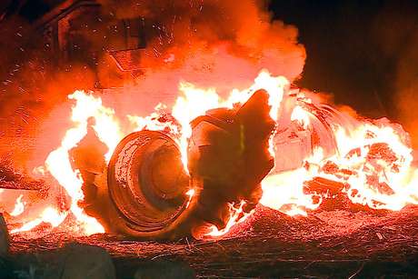 Al menos 5 maquinarias forestales y camiones las cuales pertenecerian a la empresa Mininco fueron quemadas por un grupo de encapuchados, en el Fundo la Piedra en la ruta a Curacautín Kilómetro 28, en Victoria