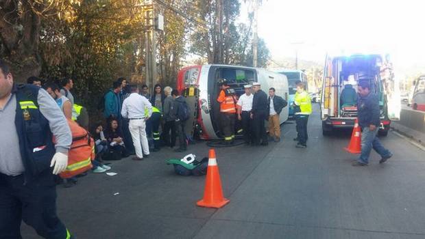 Un microbús que transportaba pasajeros volcó la tarde de este miércoles en elsector El Olivar, en Viña del Mar.El vehículo sufrió el accidente en Camino Troncal cuando realizaba su recorridoentre Quilpué y Viña del Mar y, de acuerdo a medios locales, hay alrededor de 10 lesionados en el lugar.