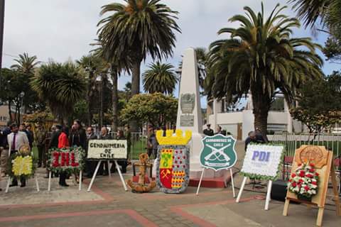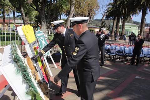 #Lebu ofrendas florales al monolito del fundador de la comuna Cornelio Saavedra Rodríguez, 154 años de fundación de la Capital Provincial.
