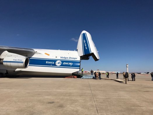 Así cargan el #Antonov con los helicópteros que combatirán los incendios en Chile: