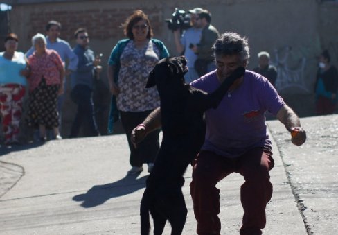 Una mascota se reencuentra con sus dueños luego del incendio que afectara a la zona de Puertas Negras en Valparaiso.