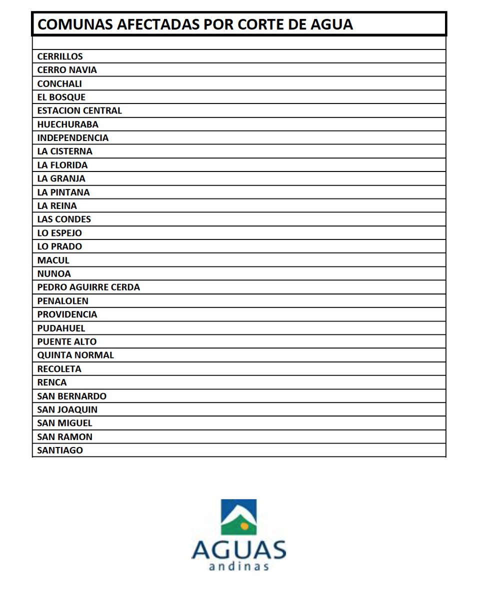 Aquí el listado de las comunas afectadas por el #CorteDeEmergencia