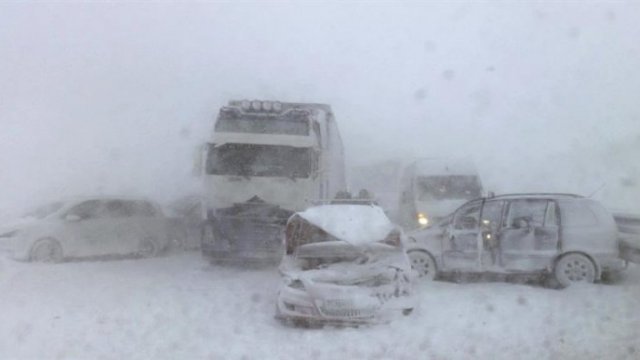 [Fotos] Tormenta de nieve causó choque múltiple en Eslovaquia