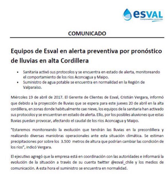 Nuestros equipos en Alerta Preventiva por pronóstico de lluvias este jueves. Suministro de agua potable en completa normalidad.